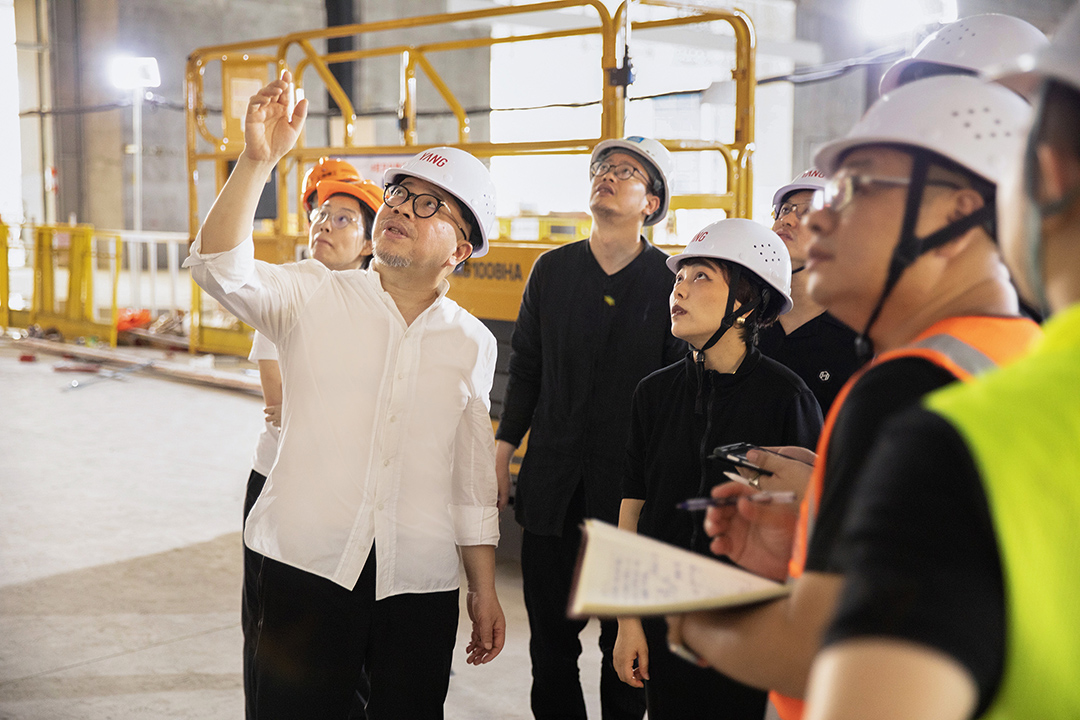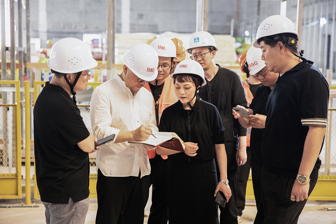 项目自2022年启动,现已进入室内主会场样板段施工的攻坚时刻,为此,6月28日YANG设计集团董事长、首席设计师杨邦胜先生亲自带队,组织集团设计副总裁陈柏华、田帅,项目总监等十余名专业团队前往现场勘察督导,狠抓细节,严控设计品质。