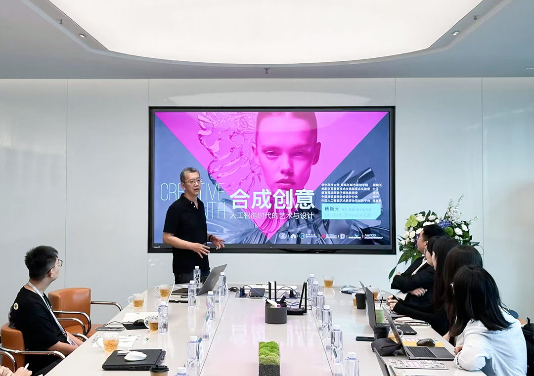 华中科技大学建筑与城市规划学院副院长、教育部动画数字媒体专业教学指导委员蔡新元教授,在开课第一天,就为大家带来了颠覆认知的第一课《合成创意——人工智能时代的艺术与设计》,蔡教授提出:人类文化的每一次进步与发展都离不开科技的推动,AI不仅仅是一种技术,更是颠覆社会的结构性力量。此次高研班不仅是技能的学习,更是一种思维的转变,行业从业者要选择拥抱科技,让科技为设计、创意赋能,而非逃避,未来已来。