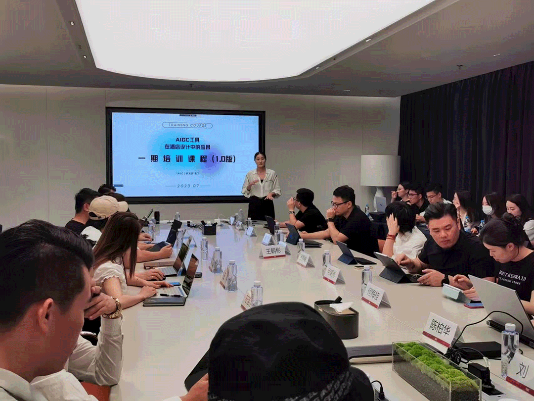 作为酒店设计行业的领航者,YANG密切关注全球设计趋势及技术革新。本次活动,不仅全力配合训练营的组织筹办,更以研发中心为代表,全程参与训练课程,系统学习AI知识架构,在结业报告中,以高端酒店设计为例,交出令人惊喜的成果。